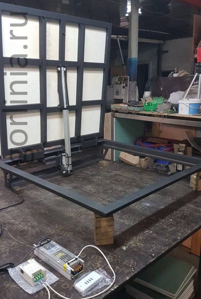 Створка открывается интегрированным линейным актуатором, управляется контроллером собственной разработки завода,