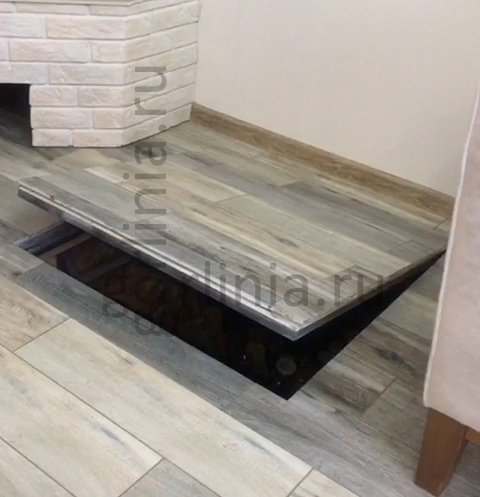 При монтаже рама ложится полкой на выровненную плиту перекрытия в нулевую отметку пола и крепится по контуру анкерами. Далее поверхность подлежит финишной отделке общим напольным покрытием с сохранением рисунка и раскладки.
