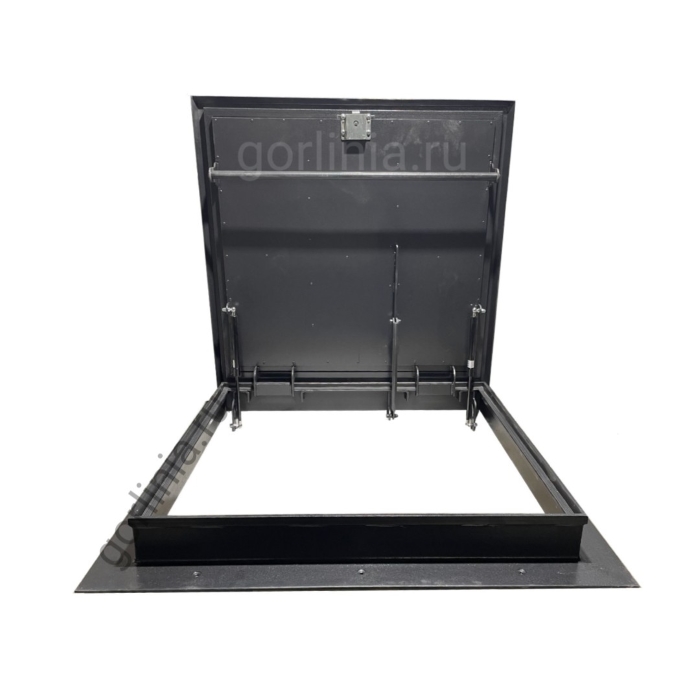Откидная прямоугольная крышка заполнена сверху гладким кровельным листом 2 мм с загнутыми книзу краями, вылетающими на 25 мм за периметр внешней стенки. Внутри каркаса створки между ребрами обвязки проложен рулонный минеральный утеплитель 50 мм, подшитый снизу листовой сталью 1 мм.