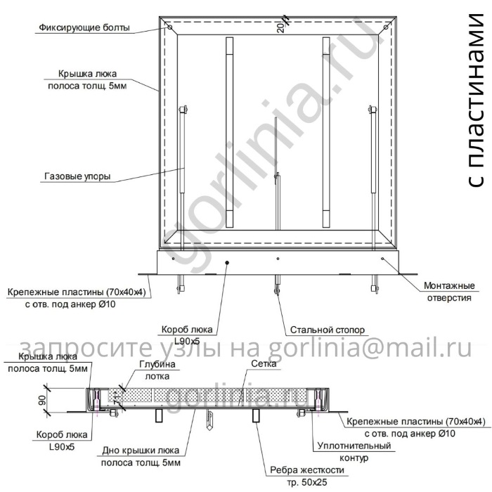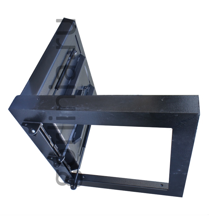 Корпус выпускается из углового профиля горячего проката с толщиной стенки 5-6 мм; корыто - из листового проката 5-8 мм с обвязкой по дну профильной балкой 50х25. Метод сборки: аргонно-дуговая сварка сплошным проваром с присадками меди. Металлические части обработаны цинкосодержащим покрытием, колерованы полиэфирной эмалью. Тяжелонагруженные крышки комплектуются газлифтами 2000N.