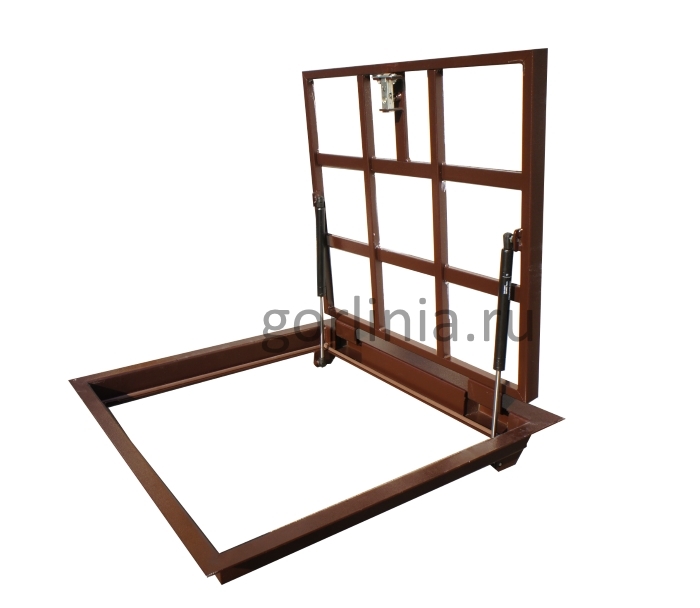 Облегченная модель в заказном размере без щелей в полу с уведенными за ось открывания петлями по длине 700. Легкая ходовая часть и удобная установка. При формировании конфигурации напольного отверстия обратите внимание, что защитные кожухи шарниров выходят за посадочную отметку по плечевой стороне 800.