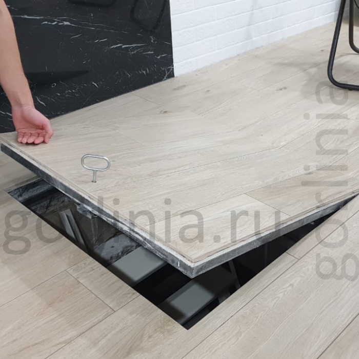Рама без наличников выставляется в существующем отверстии 90*90 см с допусками, крепится в перекрытии через вертикальные пластины даже когда Ваш ремонт закончен и пол выложен керамогранитом или настелена ламинированная доска.