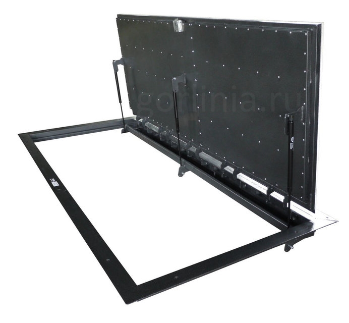 Глубина посадки рамы в зоне шарниров с учетом точечного вылета кронштейнов газлифтов и стопора 160 мм. Для примыкания коробки к стене требуется сформировать ответную опорную часть из бетона или металла.